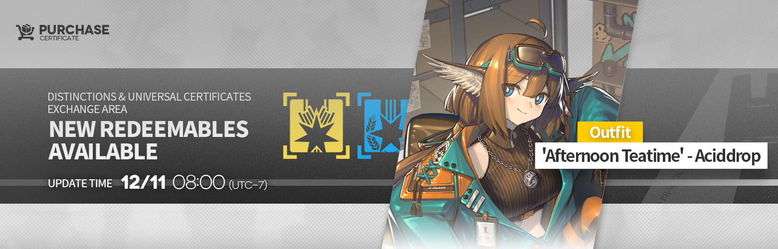 DETAILS: New redeemable in [Distinctions] and [Universal Certificates Exchange Area]: