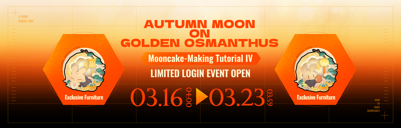 DETAILS: During the event, players can participate in three steps over the first three days: Crust Dough Kneading, Filling Mixing, and Mooncake Making. Completing these steps will reward with different mooncakes (each granting 120 Sanity) and exclusive furniture. Logging in for a total of 5 days during the event will also earn previous event furniture, Orundum, Battle Records, among others.