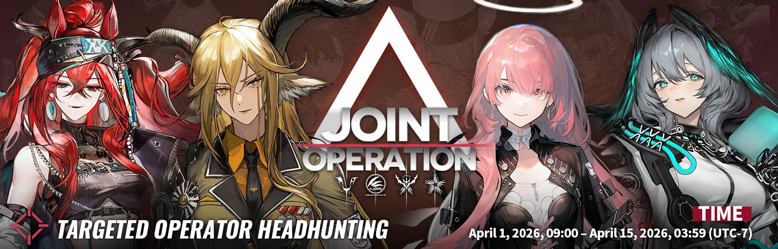 DETAILS: During the event, the Targeted Operator Headhunting, [Joint Operation], opens, and ONLY the following Operators will appear in the 6★ and 5★ Operator List of this Standard Headhunting: